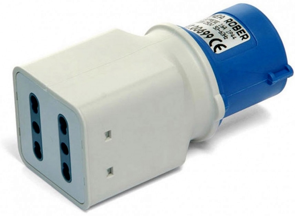 2P+T 220 V~ 16 A blu ➜ 2 prese bivalenti