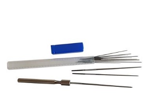 set di 13 pezzi utilizzato per la pulizia e la rettifica degli orifizi degli ugelli, con diametri che vanno da 0,45 mm a 1,7 mm.
