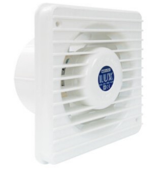 Mod. LUX102 in materiale termoplastico. Applicazione a parete. Foro uscita aria diametro 8 cm Portata 60 mc/h Consumo 15 W