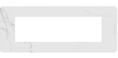 placca a 7 moduli della serie MatixGO di BTicino, nel colore Carrara (effetto marmo) e realizzata in tecnopolimero.