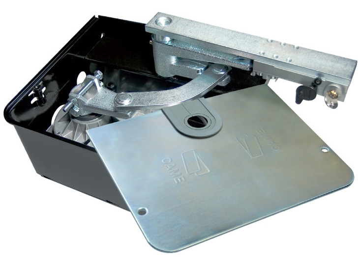 Applicazione per interrare a scomparsa i motori a battente per cancelli automatici.