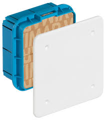Scatola di derivazione da incasso con coperchio bianco e viti di fissaggio. Dimensioni 92x92x50 mm