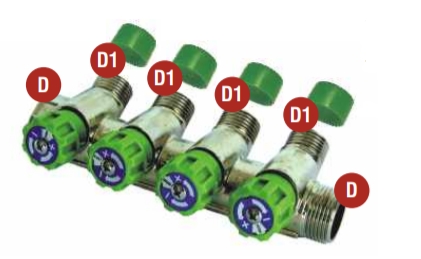 COLLETTORE CON RUBINETTI Ø3/4″MF 4 DERIVAZIONI Ø1/2″M