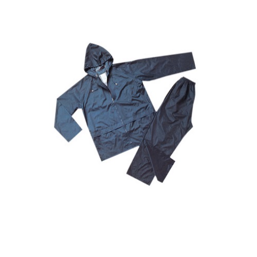 Mod. NIAGARA in poliestere spalmato interamente in PVC. Peso 200 g/mq Spessore 0,18 mm Chiusura con cerniera. Cappuccio a scomparsa. Composto da giacca e pantaloni. CE Ia categoria Taglia XXL Colore blu