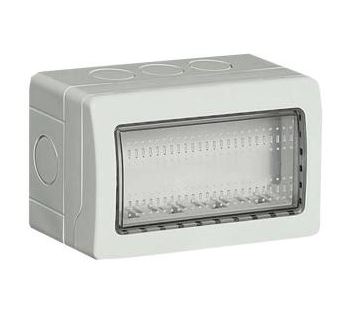 contenitore stagno a 4 moduli della serie Easy, progettato per installazioni elettriche a parete in ambienti esterni o umidi grazie al suo elevato grado di protezione IP55.
