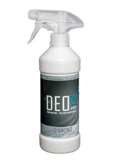 Deo Mix Pro Diamond è il profumatore per ambienti e pulitore professionale dalla fragranza fresca e vivace. La nuova formula di Deo Mix permette di profumare l’ambiente con uno o due spruzzi, garantendo una durata fino a tre giorni. Copre forti odori come: wc e scarichi, animali, fumo e frittura. La sua azione detergente lo rende adatto a pulire e spolverare tutti gli ambienti.