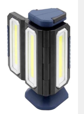 Faro di lavoro ricaricabile con tre fondi luminose orientabili, con gancio e magnete