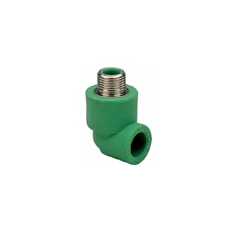 Raccordo in PP-R gomito 90° filettato maschio con staffa