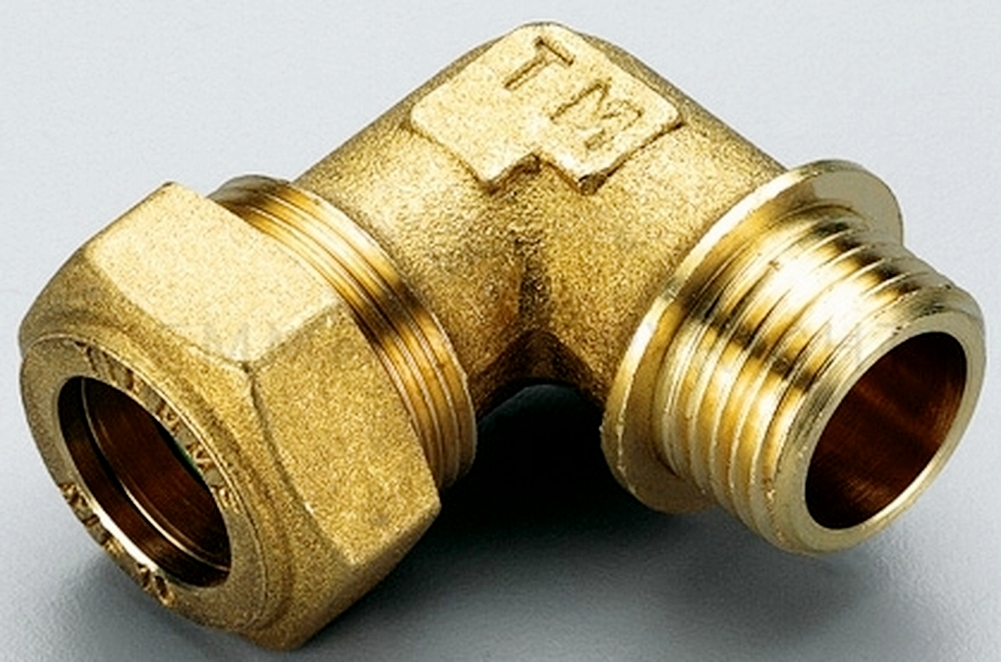 curvo maschio a compressione per tubo rame con tenuta O-ring per trasporto gas.
