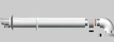 sistema standard per l’evacuazione dei fumi e l’aspirazione dell’aria comburente nelle caldaie a condensazione. Si definisce “coassiale” perché è composto da due tubi uno dentro l’altro: quello interno (Ø 60 mm) scarica i fumi, mentre quello esterno (Ø 100 mm) aspira l’aria dall’esterno