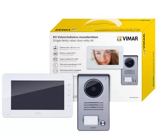 - I kit sono pronti all’uso, non richiedono una programmazione particolare, è sufficiente collegare i dispositivi con soli 2 fili; distanza massima tra targa e l’ultimo monitor: fino 100 m con 1 mm2