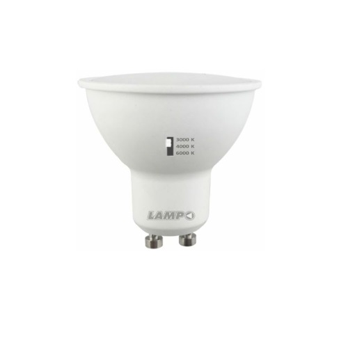Lampadina LED 8W TRICOLOR Grazie allo switch integrato è possibile commutare il colore del LED in qualsiasi momento scegliendo tra 3000K, 4000K o 6000K Corpo in alluminio ricoperto in termoplastico diffusore in policarbonato opaco.