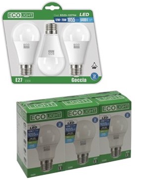 LAMPADINE ECOLIGHTLED E27 9 WATT 6500°K CONFEZIONE 3 PEZZI