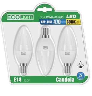 LAMPADINE LED OLIVA ECOLIGHT CONF. 3 PZ. – 8 WATT – 6400 K – LUCE FREDDA -806 LUMEN