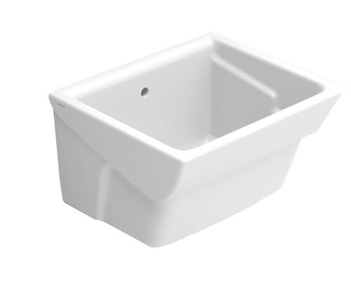 Lavatoio in ceramica da appoggio. I piedini di supporto ed il fissaggio sono da ordinare a parte. (Necessari 2 piedini per lavatoio Art. 185-VDMP-..). Foro di scarico, 90 mm esterno e 65 mm interno.