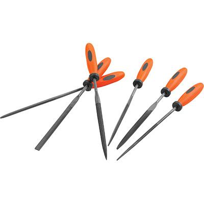 acciaio legato. Impugnature bimateriale antiscivolo. In serie: piatta, guardia piatta,