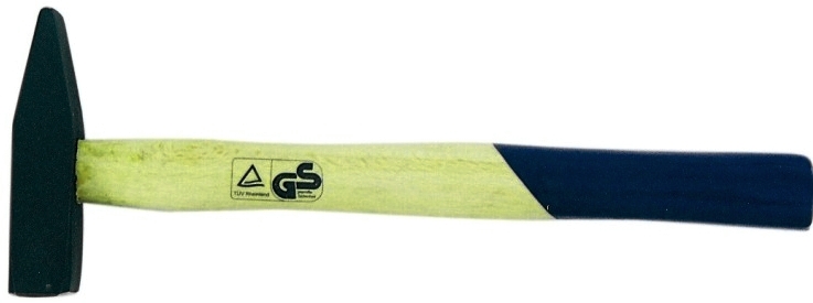 acciaio forgiato,manico in legno verniciato. Testa quadra, penna simmetrica. Tipo