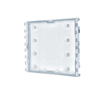 Modulo pulsanti di chiamata per pulsantiera Ultra, compatibile con tutti i sistemi. Predisposto per 8 pulsanti di chiamata realizzati in plastica professionale con trattamento anti-ingiallimento e anti-opacizzazione oppure in alluminio. Da completare con 4 pulsanti singoli art. UT9211, UT9211M, UT9211FM (4 chiamate), 4 pulsanti doppi art. UT9212, UT9212M, UT9212FM (8 chiamate) o con tappi art. UT9221, UT9221M, UT9222, UT9222M, UT9223, UT9223M. Spegnimento automatico della retroilluminazione dei cartellini portanome durante le ore diurne attraverso il sensore crepuscolare del modulo audio o audio/video abbinato. Illuminazione dei cartellini portanome di colore bianco. Dimensioni (L x H x P): 100 x 90 x 35mm.