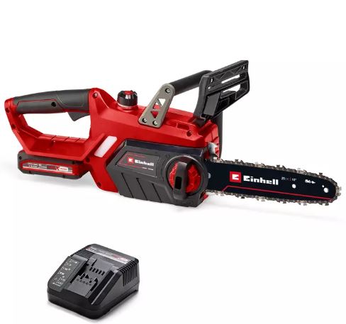 La motosega a batteria Einhell GE-LC 18/25-1 Li Kit (1x 3,0 Ah) offre, in un set, tutti i componenti per un inizio potente o per l’espansione della famiglia Power X-Change. Con gli utensili a batteria Einhell, il raggio d’azione per gli appassionati del fai-da-te e i giardinieri hobbisti è praticamente illimitato: gli ostacoli dovuti ai cavi aggrovigliati, le limitazioni imposte da cavi troppo corti o la fastidiosa ricerca di una prolunga appartengono ormai al passato grazie alla gamma Power X-Change. Una batteria e un caricabatterie possono essere utilizzati per tutti i dispositivi della serie. Il set comprende la motosega a batteria GE-LC 18/25-1 Li: uno strumento affidabile per sfoltire e abbattere alberi di piccole e medie dimensioni, per la lavorazione della legna da ardere e per accorciare e sezionare il legname. La motosega con lunghezza di taglio di 23 cm è dotata di una catena di alta qualità con uno spessore di 1,1 mm, 40 maglie e una passo catena di 3/8″. Per la massima sicurezza dell’utente, il sistema anti-rinculo con freno catena meccanico immediato si attiva automaticamente in caso di contraccolpo, bloccando istantaneamente la catena. Un perno cattura catena trattiene la catena nel caso questa dovesse saltare. Il robusto arresto artigliato in metallo garantisce una guida sicura e confortevole durante ogni operazione, mentre l’impugnatura ergonomica della motosega a batteria Einhell offre una presa sicura e comoda. La tensione della catena può essere regolata senza bisogno di attrezzi, e anche la sostituzione della catena avviene senza l’uso di utensili. Il serbatoio dell’olio per la lubrificazione automatica della catena può essere facilmente riempito grazie all’ampia apertura di riempimento. Nel set sono inclusi un caricabatterie e una batteria Power X-Change da 3,0 Ah. La potente batteria è dotata di un indicatore di carica che consente di verificare comodamente lo stato di carica tramite tre LED. Questa batteria di sistema può essere utilizzata con tutti i membri della famiglia di dispositivi Power X-Change. Il caricabatterie rapido è compatibile con tutte le batterie Power X-Change.