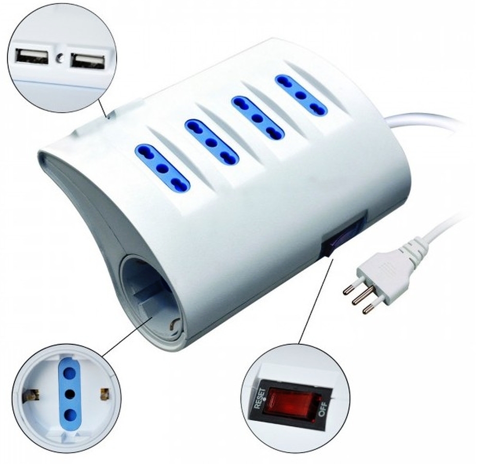 10A/16A. Inoltre è accessoriata con 2 prese USB da 1000mah. Completa di interruttore