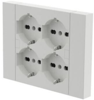 multiprese da parete Quadra compatibili con tutte la scatole ad incasso 3 moduli sia muratura che cartongesso. 4 prese bipasso schuko. Cablaggio rapido. Colore bianco