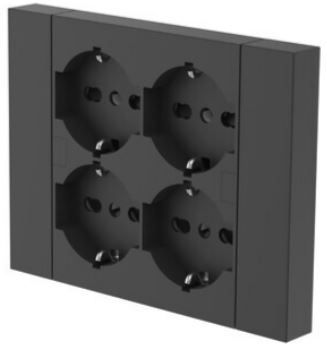 multiprese da parete Quadra compatibili con tutte la scatole ad incasso 3 moduli sia muratura che cartongesso. 4 prese bipasso schuko. Cablaggio rapido. Colore nero
