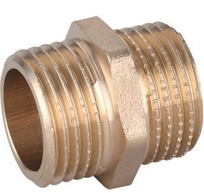 nipples diritto maschio/maschio (MM) in ottone giallo con filettatura da 1/2″.