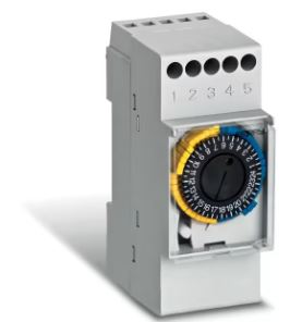 Interruttore orario giornaliero a cavalieri con riserva di carica. 2DIN.