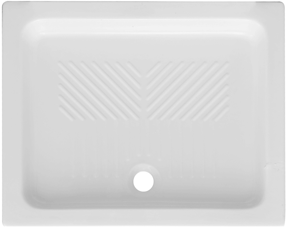 Piatto doccia rettangolare in ceramica bianca con antiscivolo integrato. Foro Diam. 60 mm.