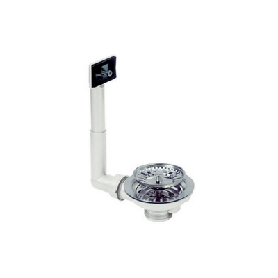 Piletta per lavello dal diam. 90 mm (entrata3”1/2) con troppo pieno, con cestello e gattinara in acciaio inox, scarico filettato da 1”1/2.