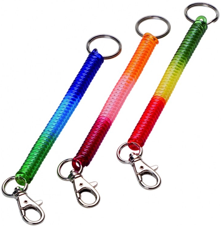 spiralato in plastica colorata. Con moschettone e anello. Diametro spirale 10 mm,