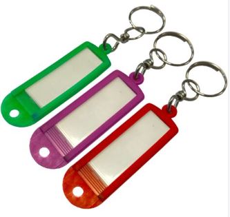 - Materiale: Corpo in plastica con etichetta scrivibile in plastica e anello in metallo.