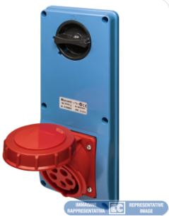 Presa fissa da incasso interbloccata. Grado di protezione IP65. Dimensioni: 118x277x20 mm. Interassi di fissaggio 141+118×100 mm. Presa inclinata di 20°. Interruttore tipo AC23A – 10 kA. Maniglia ergonomica lucchettabile in posizione ON/OFF. Molle di chiusura coperchio in acciaio inox.