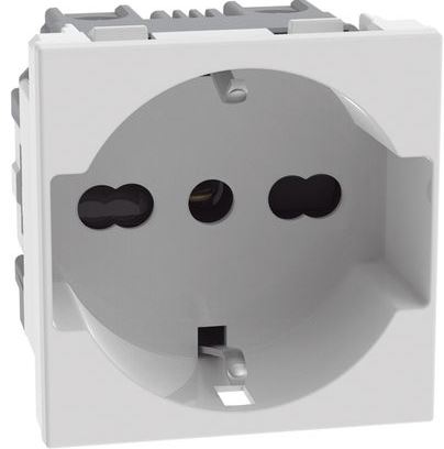 presa elettrica standard italiana che combina le funzionalità della presa bipasso e della presa Schuko, compatibile con la serie civile BTicino MatixGo.