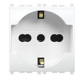 componente elettrico universale di Elettrocanali progettato per accogliere diverse tipologie di spine standard italiano e tedesco in un unico frutto.