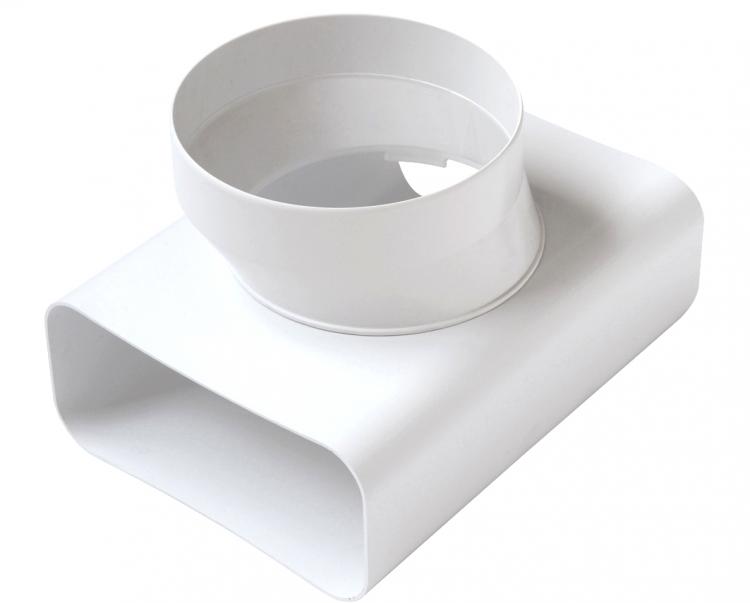 RACCORDO A “T” ECCENTRICO VERTICALE PER PASSAGGIO DA TUBO RETTANGOLARE A TONDO E