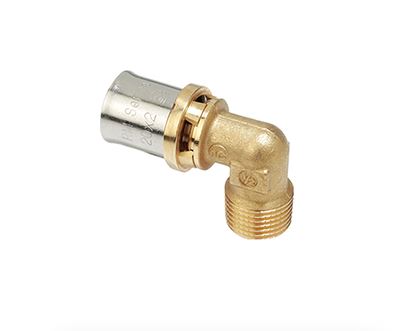Raccordo curvo 90° filettato maschio, a pressare multipinza.