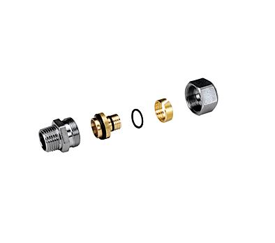 Raccordo diritto filettato maschio, per tubi in plastica o multistrato. In ottone cromato.
